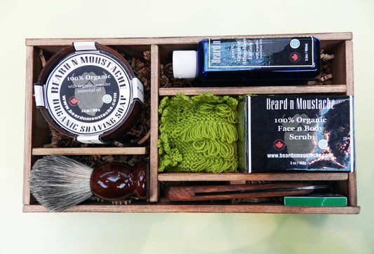 Men's Organic Barber Set in Wooden Box – Classic Shaving Kit for Men - Beard n Moustache